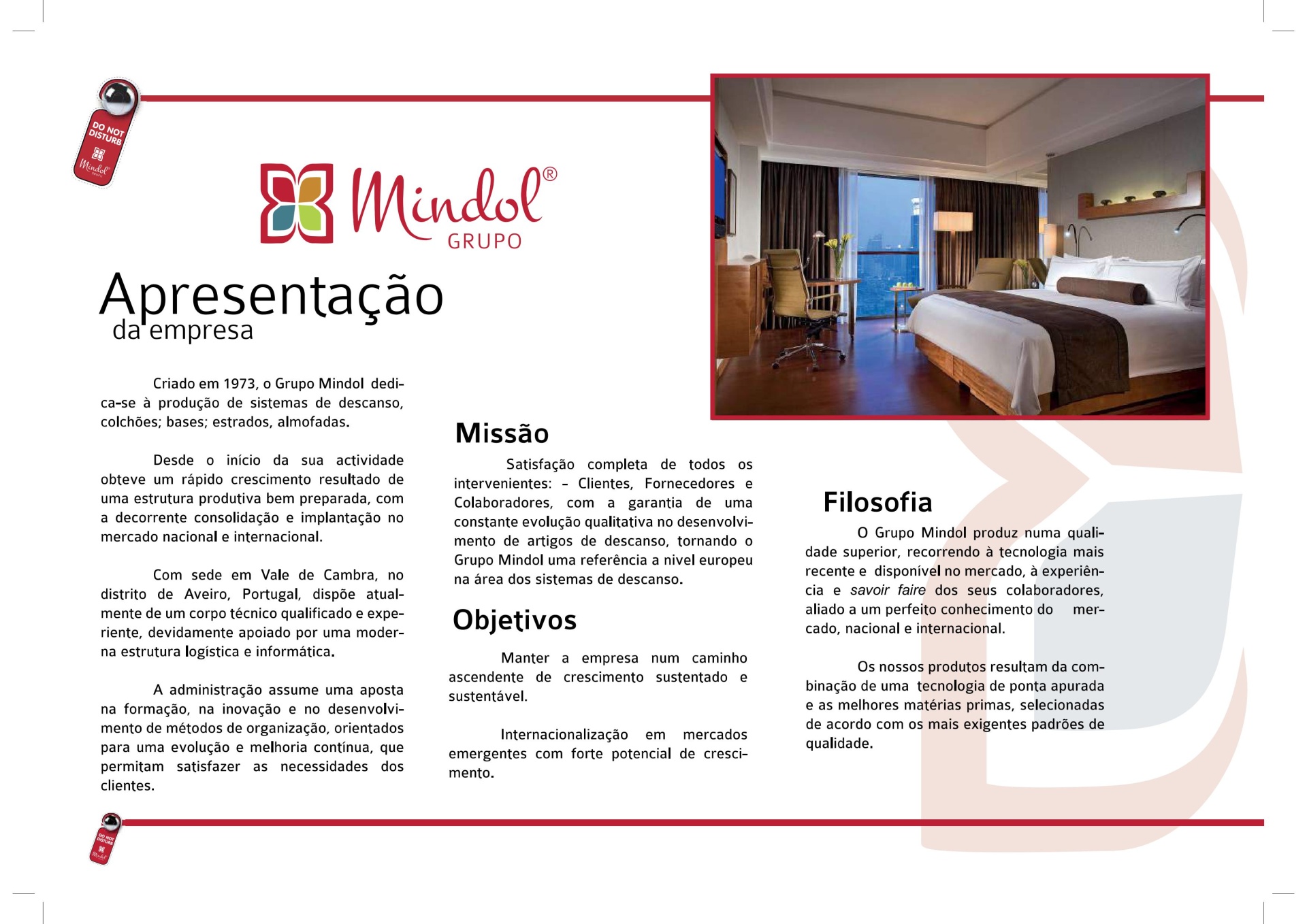 Clientes, fornecedores e colaboradores, com a garantia de uma constante evolução qualitativa no desenvolvimento de artigos de descanso, tornando o Grupo Mindol uma referência a nível europeu na área dos sistemas de descanso.