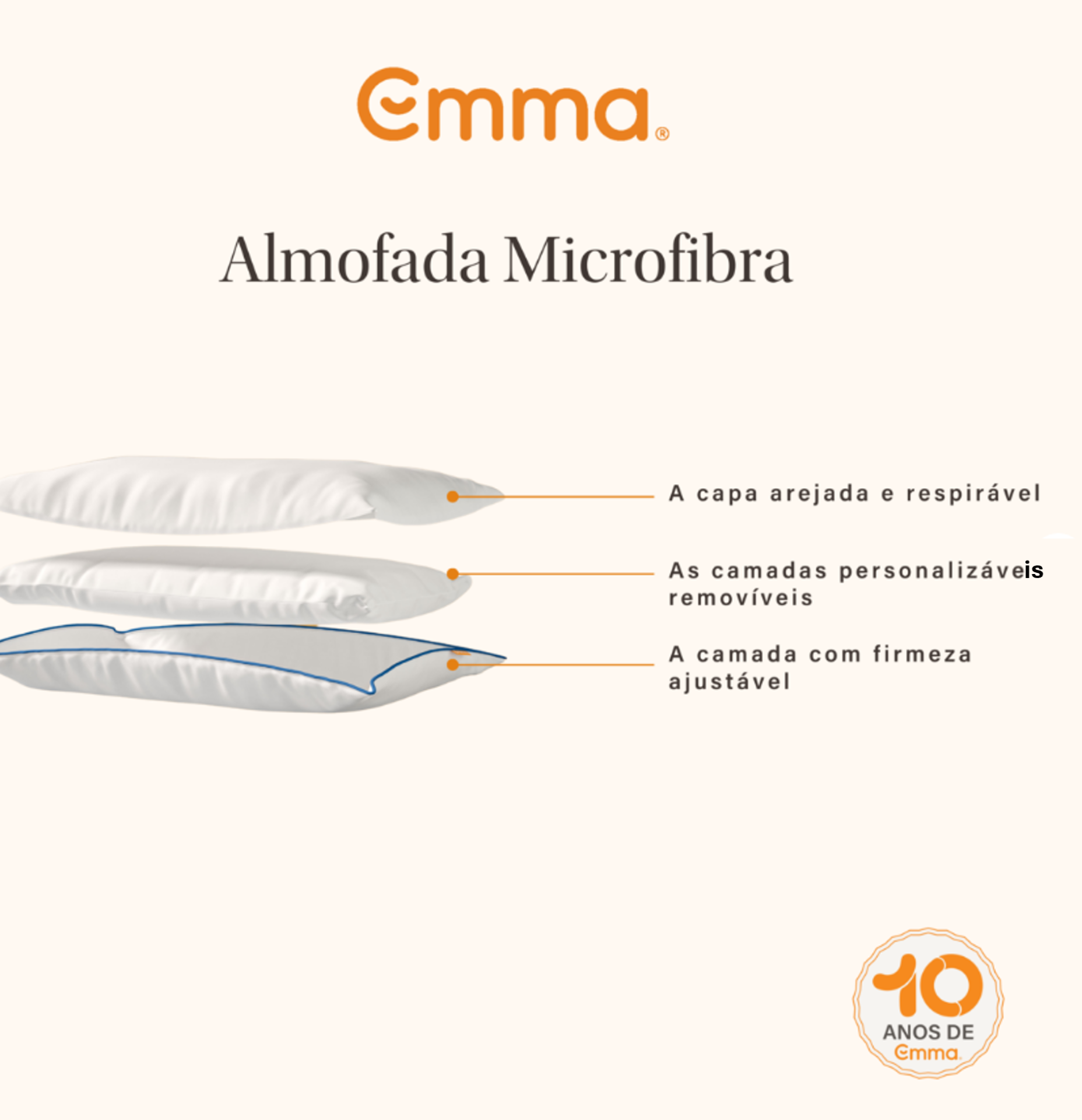 A cobertura e o interior da almofada Emma Microfibra são constituídas por microfibras ultraleves (100% Poliéster)