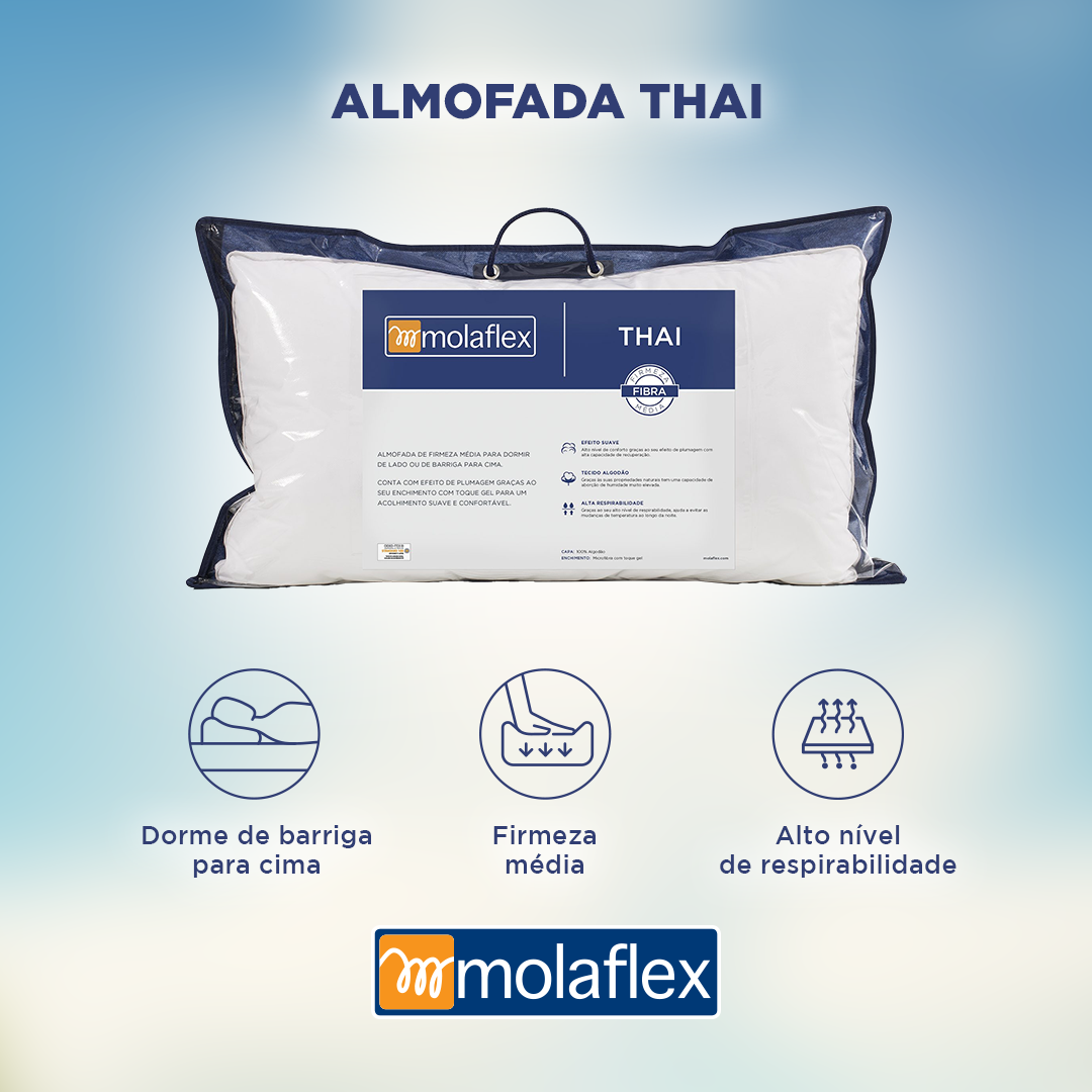 Almofada de firmeza média para dormir de lado ou de barriga para cima.