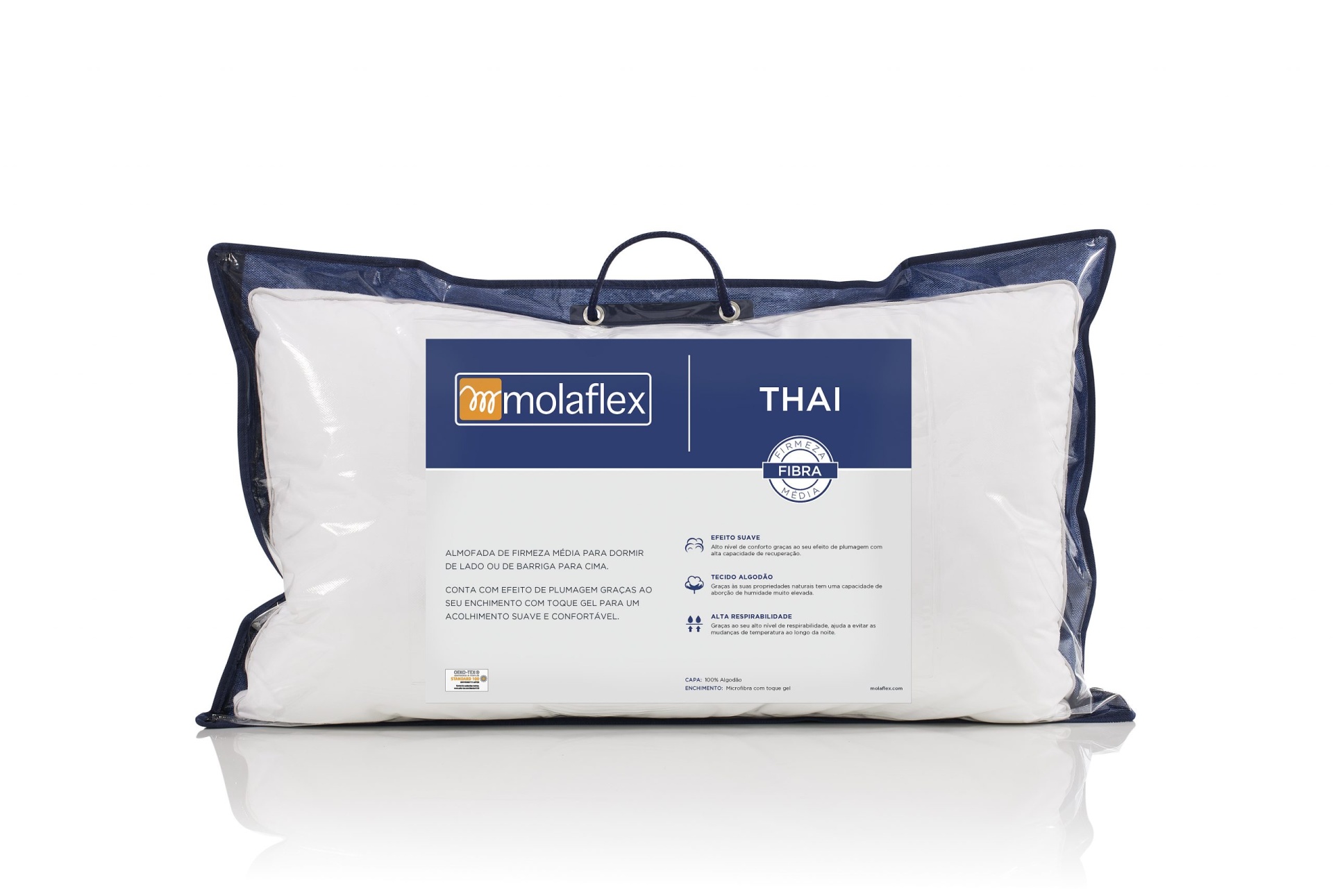 Almofada Thai com efeito de plumagem, graças ao seu enchimento com toque gel para um acolhimento suave e confortável.