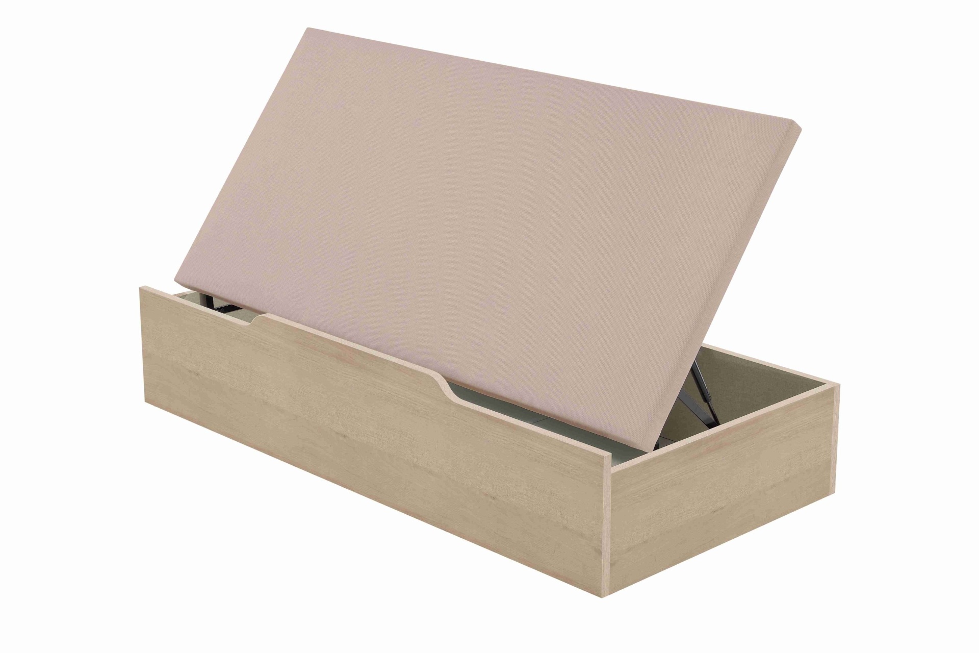 Tampo com tecido antideslizante combinado com a cor da madeira. Este tecido é respirável e permite a abertura da base com toda a comodidade, mantendo o colchão na base.