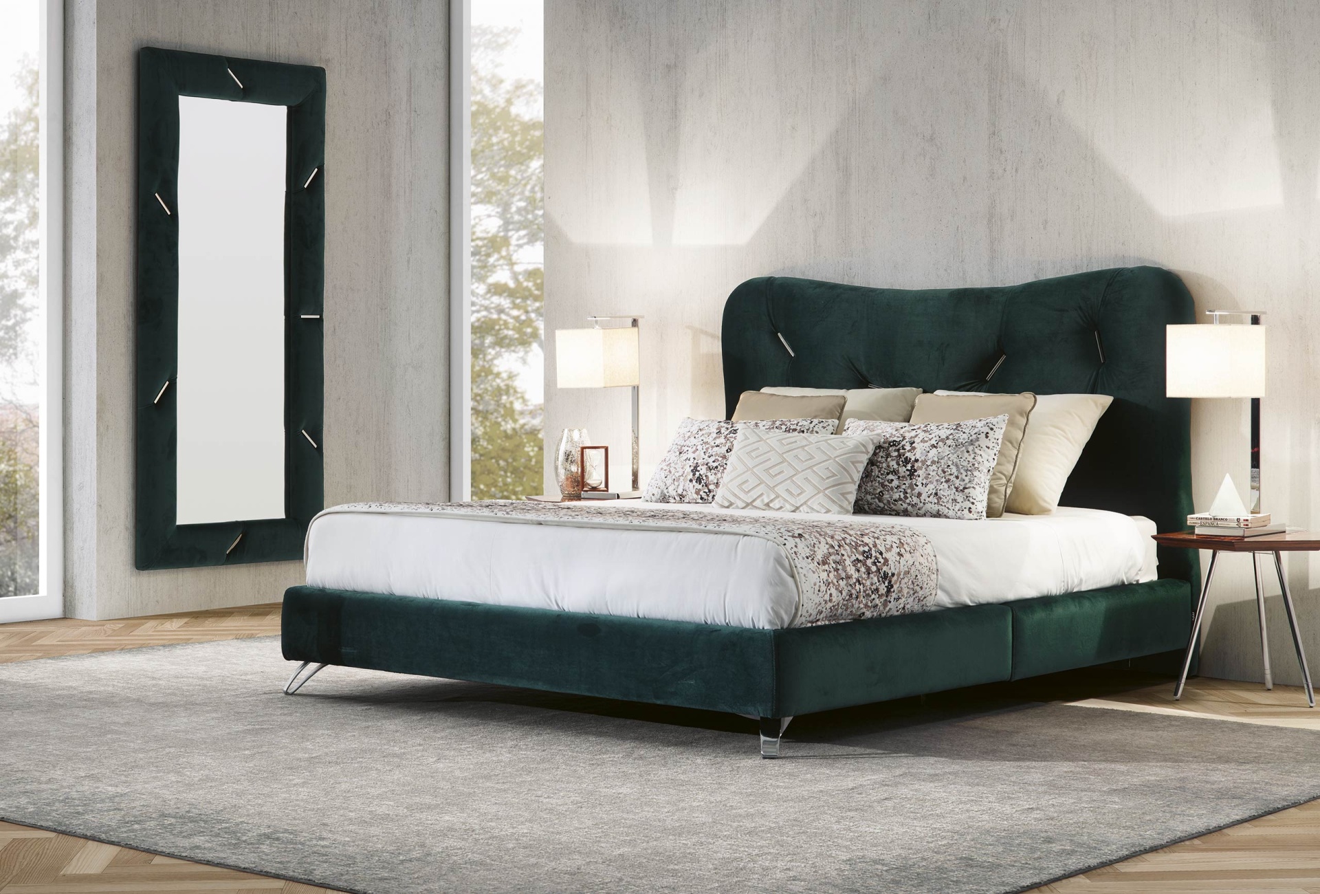 As pernas delicadas completam o visual com sua elegância sutil, tornando a cama Naomi a peça central perfeita para qualquer quarto requintado.
