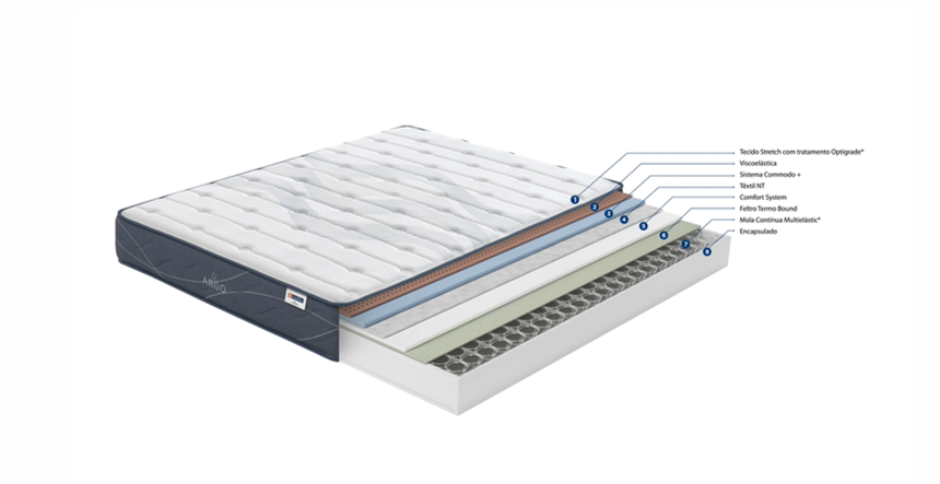 O enchimento viscoelástico junta-se à mola contínua multielástic®, de forma a reduzir os pontos de pressão e evitar interrupções durante o sono. O resultado é uma noite que o leva muito além das nuvens.