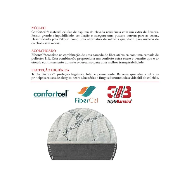 O Colchão Pikolin Allegro é um colchão de combinação perfeita entre espuma e funcionalidade para o seu descanso. O modelo Allegro de material celular Confortcel oferece um conforto suave, fresco e estável graças à sua camada de Fibercel que combina fibra atérmica com fibra de poliéster altamente respirável. O seu núcleo de material celular Confortcel garante estabilidade durante o sono e permite que não se aperceba dos movimentos do seu parceiro ao dormir.
