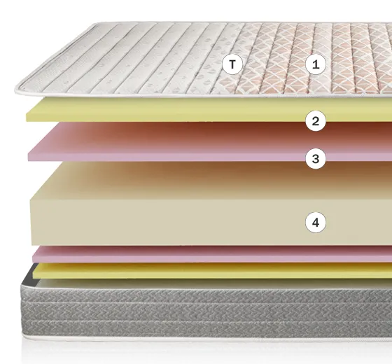 2. Viscofoam®: camada de acolchoado que acolhe a pessoa de acordo com a sua pressão e temperatura, adaptando-se à forma do corpo. Além disso, reduz a pressão arterial e dispersa o calor que geramos durante o sono.