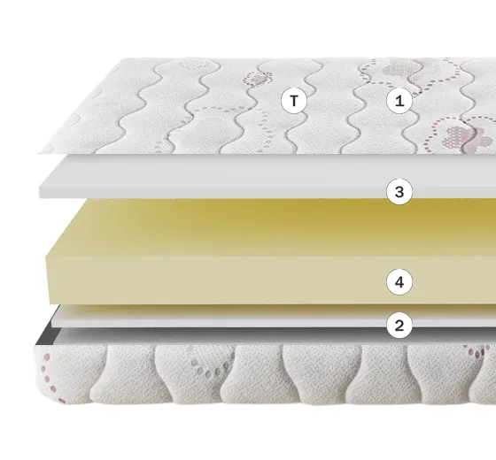 Tecnologia do núcleo: este núcleo é o material celular de elevada resistência, espuma HR, que suporta de forma eficaz o peso do corpo e mantém as suas propriedades de descanso durante toda a vida útil do colchão.