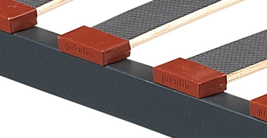 Capas antiderrapantes sobre a estrutura e trave central para um encaixe perfeito das ripas e ausência total de ruídos.