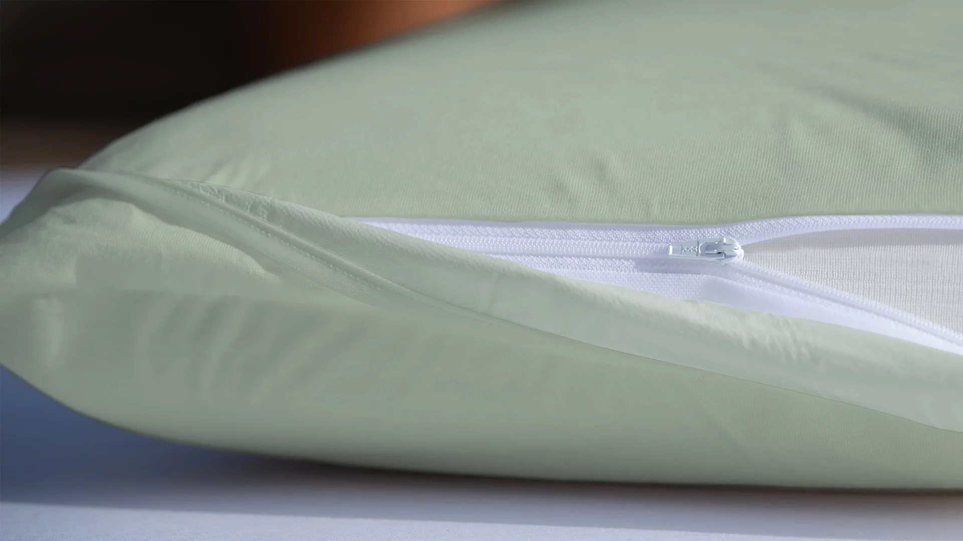 A fronha impermeável B-Sensible® NaturZinc® possui em exclusivo um fecho zíper e um sistema de circulação de ar interno.