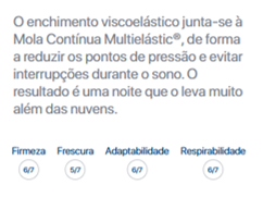 O enchimento viscoelástico junta-se à Mola Contínua Multielástic e ao Sommier Wood 19 para uma noite que o leva além das nuvens.